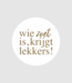 Feestelijke Wie zoet is krijgt… etiketten in wit met glanzende goudfolie. Ideaal voor luxe Sinterklaasverpakkingen. Stevig materiaal, per rol van 500 stuks. Lees meer..